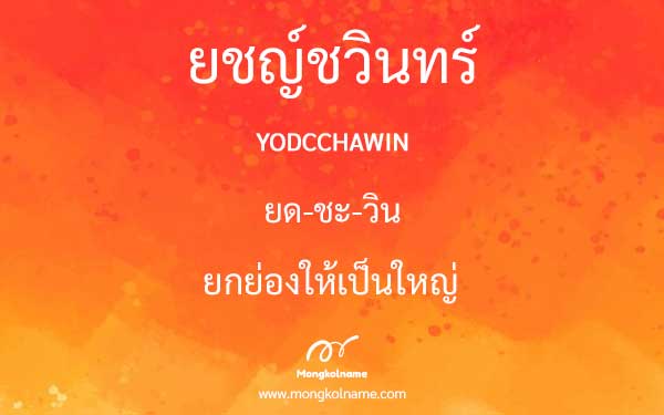 ยชญ์ชวินทร์ มีความหมายในภาษาบาลี แปลว่า ยกย่องให้เป็นใหญ่ ( YODCCHAWIN ) อ่านว่า ยด-ชะ-วิน ตั้งชื่อมงคล เหมาะสำหรับเพศชาย เกิดวันอาทิตย์ อังคาร เสาร์ พุธกลางคืน(ราหู)