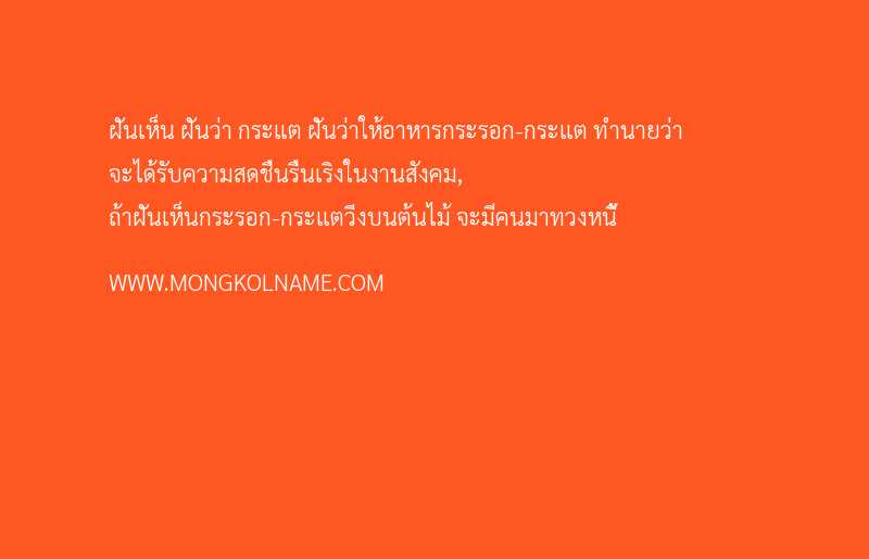 ฝันเห็น ฝันว่า กระแต ฝันว่าให้อาหารกระรอก-กระแต ทำนายว่า จะได้รับความสดชื่นรื่นเริงในงานสังคม, ถ้าฝันเห็นกระรอก-กระแตวิ่งบนต้นไม้ จะมีคนมาทวงหนี้ฝันเห็น 'กระแต'