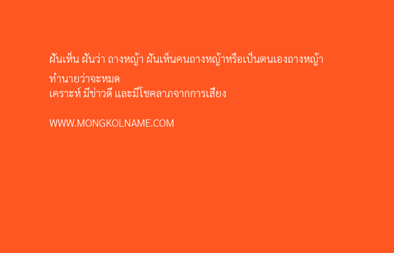 ฝันเห็น ฝันว่า ถางหญ้า ฝันเห็นคนถางหญ้าหรือเป็นตนเองถางหญ้า ทำนายว่าจะหมด เคราะห์ มีข่าวดี และมีโชคลาภจากการเสี่ยงฝันเห็น 'ถางหญ้า'