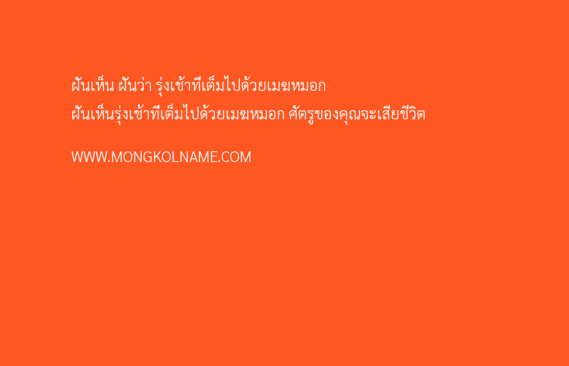 กางมุ้ง รักเพื่อน บัว แบกหาม เพื่อนที่ตายไปแล้ว ผลจันทร์ ( พืช ) เข้าเฟสบุคไม่ได้ ตะปู ฉลาด เพลิง รักสามีตัวเอง ผ้าห่มหนาๆ ฌาปนกิจ กินเนื้อวัว พัด กกลูก กลางคืน หญ้า ผู้ชายมีผมน้อย ฝักดาบ อากาศบริสุทธิ์ คนรักเกิดความรู้สึกผิดหวัง อวัยวะในร่างกายงอกขึ้น คนแก่ รอยเปรอะเปื้อนตามร่างกาย ซองจดหมายสีแดง ผักกาด ภาพ ของเน่าเสีย ฝุ่นเข้าตา อาเจียน ขนคิ้ว แมวตาย ผึ้งสร้างรังตามต้นไม้ เผาศพ นกยูง โค่นต้นไม้แก่ กลดพระ (เครื่องกันแดดหรือฝน) เพื่อนอยู่ห่างไกล มู่ลี่ ฝังทั้งเป็น ป่าช้า ตาบอด วงเวียน ทาแป้ง กินผลไม้ จับ คนร้าย วันเกิด ชู้รัก น้ำพุสวยงาม นุ่งชุดขาว นกคุ่ม ไฮโล ได้ใบสั่งจากตำรวจ ถากไม้ กระต่ายหลายตัววิ่ง กำแพงโบราณ กองดิน แคร่หาม บัวหลวง คนอื่นถูกศาลตัดสินว่ามีความผิด จุฬาภรณวลัยลักษณ์ อัครราชกุมารี ปล่องไฟ สนามกีฬา ใยแมงมุม ฝีขึ้นตามร่างกาย คนที่มีท่าทางเร่งรีบ ถูก แตน-ต่อ ต่อย ดับตะเกียง ช้อนทอง เมฆลอยนิ่ง ขนมปัง ไฟไหม้ผม ฆ่าศัตรู งม สามเณร กุญแจหาย ปี่ น้ำตา เสื่อไม้ไผ่ เข็มเย็บผ้า สมเด็จพระเจ้า ภคินีเธอ เจ้าฟ้าเพชรรัตนราชสุดา สิริโสภาพัณณวดี เชื้อเชิญ ยิงปืน สนามหญ้า ขี่ควาย ตู้กับข้าว ได้ยินเสียงระฆัง กำแพง เสี่ยงเซียมซี โต้เถียง ลูกอินทร์ ทำผ้าเช็ดหน้าหาย ศีล กระเป๋าเดินทาง เห็นเปลือกหอยเปล่าๆ ทำให้คนอื่นตื่น เมฆสีเลือด ญาณ
